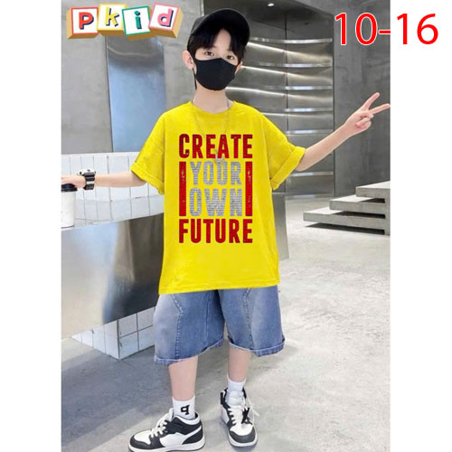 A480286 - Set jean sang trọng lịch lãm cho các bé trai áo chất thun in chữ quần jean lửng_Size 10-16