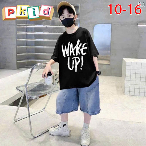 A480292 - Set jean sang trọng lịch lãm cho các bé trai áo chất thun in chữ quần jean lửng_Size 10-16