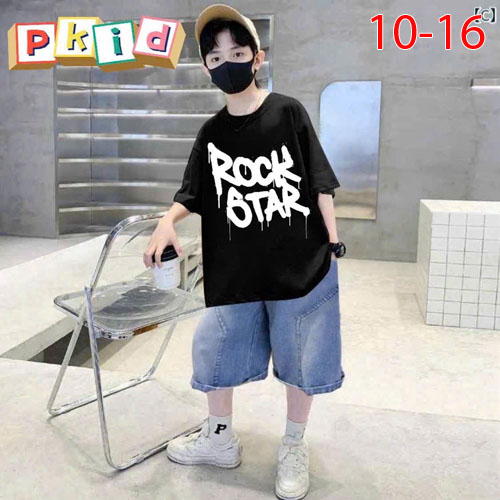 A480293 - Set jean sang trọng lịch lãm cho các bé trai áo chất thun in chữ quần jean lửng_Size 10-16