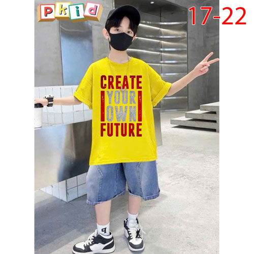 A480307 - Set jean sang trọng lịch lãm cho các bé trai áo chất thun in chữ quần jean lửng_Size 17-22