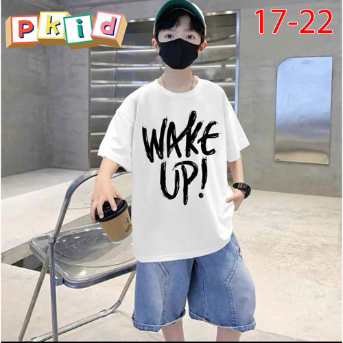 A480311 - Set jean sang trọng lịch lãm cho các bé trai áo chất thun in chữ quần jean lửng_Size 17-22