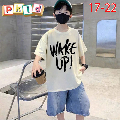 A480318 - Set jean sang trọng lịch lãm cho các bé trai áo chất thun in chữ quần jean lửng_Size 17-22