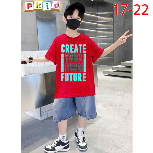 A480320 - Set jean sang trọng lịch lãm cho các bé trai áo chất thun in chữ quần jean lửng_Size 17-22