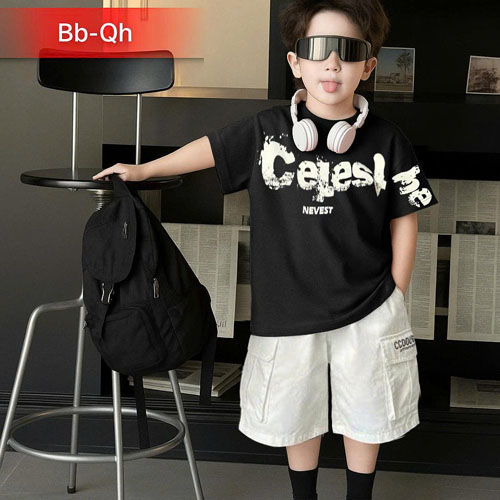 A480588 - Bộ phối màu đơn giản cho bé trai áo thun cotton 4c in chữ Celeslhe quần vải jean mềm mại t