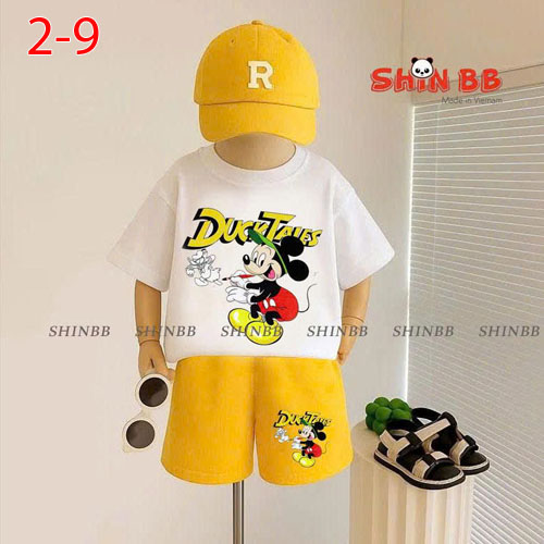 A209254 - Bộ YoYo BT thun cotton 4c in KHỦNG LONG MICKEY Lặn Biển quần đốm chạy 2 sọc_Size 2-9