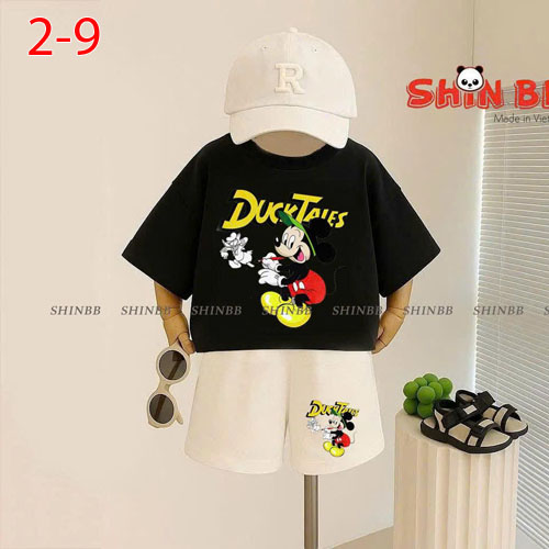 A209254 - Bộ YoYo BT thun cotton 4c in KHỦNG LONG MICKEY Lặn Biển quần đốm chạy 2 sọc_Size 2-9