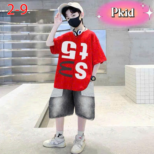 A481163 - Set jean sang trọng lịch lãm cho các bé trai áo thun in chữ tổng hợp quần jean lửng_Size 2