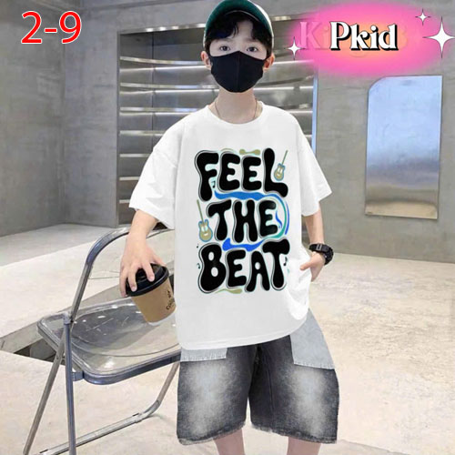A481165 - Set jean sang trọng lịch lãm cho các bé trai áo thun in chữ tổng hợp quần jean lửng_Size 2