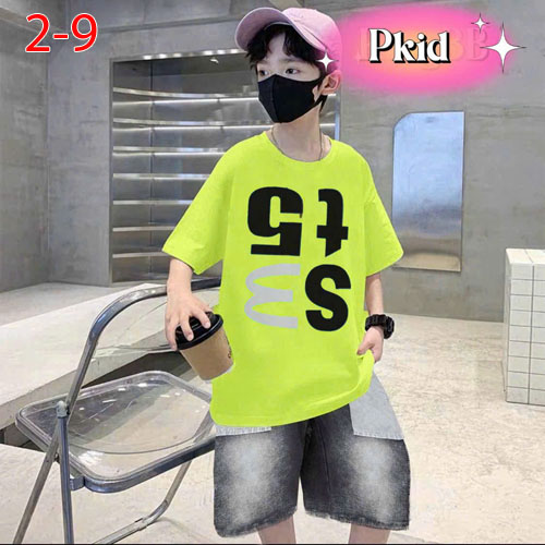 A481176 - Set jean sang trọng lịch lãm cho các bé trai áo thun in chữ tổng hợp quần jean lửng_Size 2