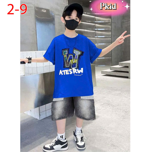 A481182 - Set jean sang trọng lịch lãm cho các bé trai áo thun in chữ tổng hợp quần jean lửng_Size 2