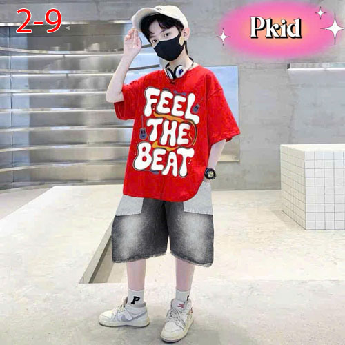 A481185 - Set jean sang trọng lịch lãm cho các bé trai áo thun in chữ tổng hợp quần jean lửng_Size 2