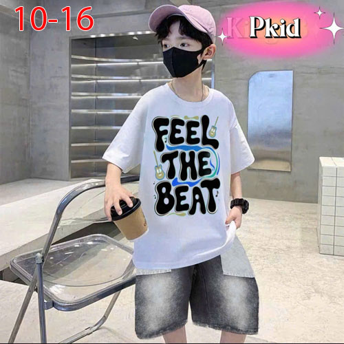 A481192 - Set jean sang trọng lịch lãm cho các bé trai áo thun in chữ tổng hợp quần jean lửng_Size 1
