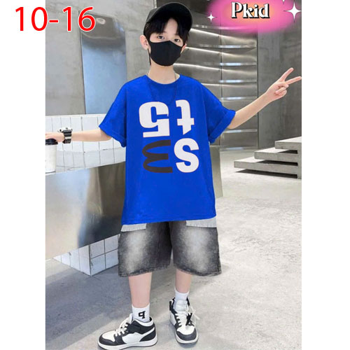 A481194 - Set jean sang trọng lịch lãm cho các bé trai áo thun in chữ tổng hợp quần jean lửng_Size 1