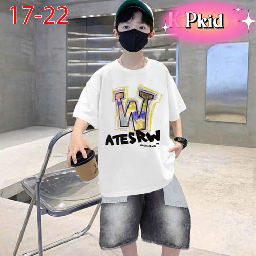A481225 - Set jean sang trọng lịch lãm cho các bé trai áo thun in chữ tổng hợp quần jean lửng_Size 1