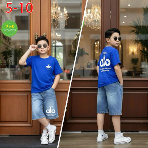 A481311 - Set jean bé trai áo thun contton in alo trước sau mix cùng quần jean lửng wash mềm sợi cot