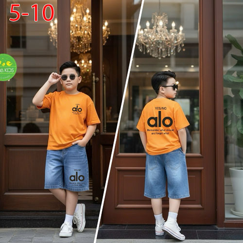 A481312 - Set jean bé trai áo thun contton in alo trước sau mix cùng quần jean lửng wash mềm sợi cot
