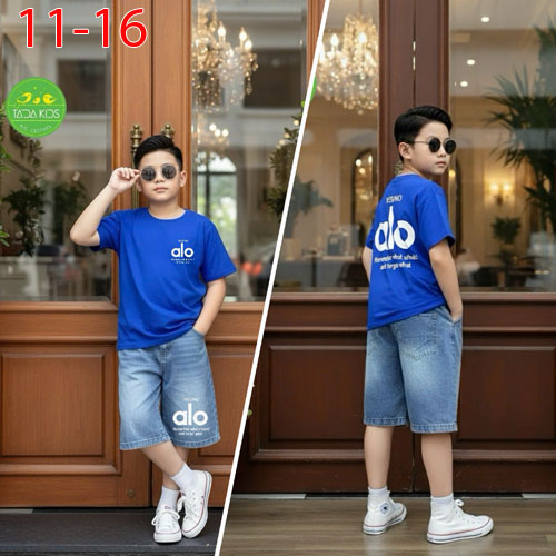 A481316 - Set jean bé trai áo thun contton in alo trước sau mix cùng quần jean lửng wash mềm sợi cot