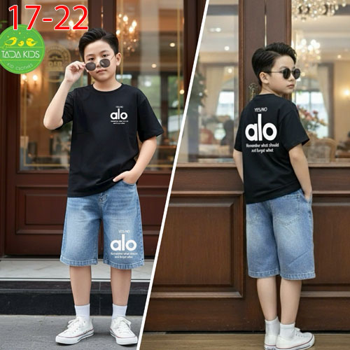A481326 - Set jean bé trai áo thun contton in alo trước sau mix cùng quần jean lửng wash mềm sợi cot