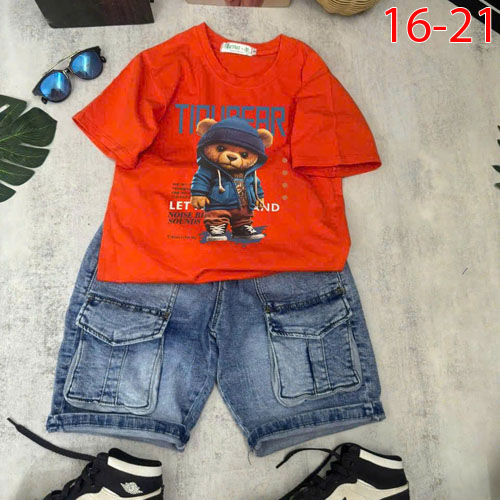 A481590 - Set jean in hình siêu sang cho bé trai áo thun cotton 4c in gấu quần jean thun co giãn_Siz