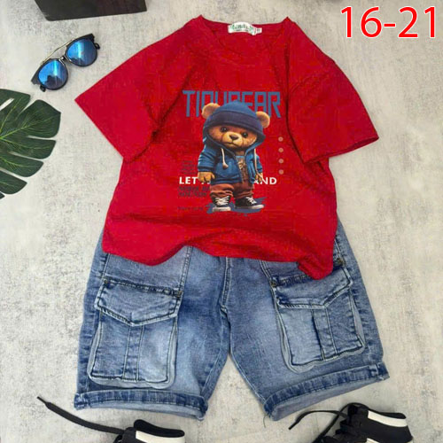 A481592 - Set jean in hình siêu sang cho bé trai áo thun cotton 4c in gấu quần jean thun co giãn_Siz