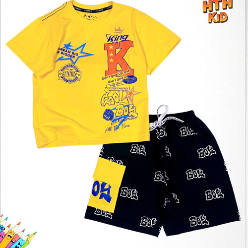 A481823 - Bộ bé trai có tay quần túi hộp in rơi trước sau in chữ K chất thun cotton 4 chiều_Size 3-7