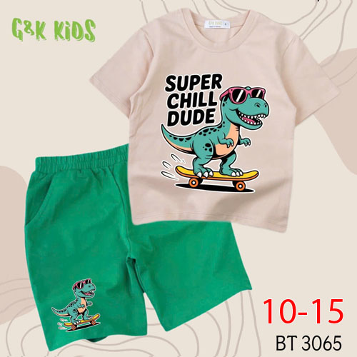 A482533 - Bộ bé trai chất thun coton 4c in khủng long SUPER CHILL DUDE_Size 10-15