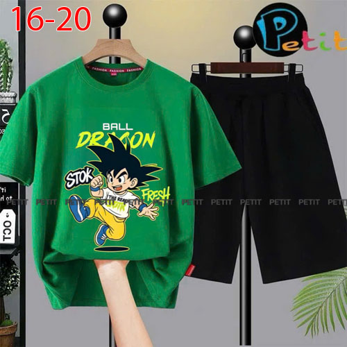 A482637 - Bộ tay ngắn bé trai, form to cực ngầu thun cotton 4c in goku chữ OFF THE WALL_Size 16-20
