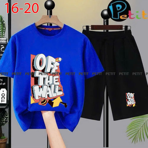 A482643 - Bộ tay ngắn bé trai, form to cực ngầu thun cotton 4c in goku chữ OFF THE WALL_Size 16-20