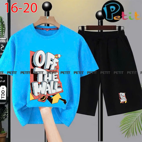 A482656 - Bộ tay ngắn bé trai, form to cực ngầu thun cotton 4c in goku chữ OFF THE WALL_Size 16-20
