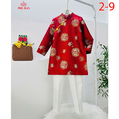 A482857 - Áo Dài Du Xuân bé trai chất vải gấm cao cấp dệt họa tiết rồng, vân mây ánh nhũ đứng form_S