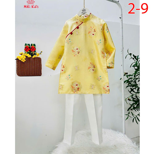 A482858 - Áo Dài Du Xuân bé trai chất vải gấm cao cấp dệt họa tiết rồng, vân mây ánh nhũ đứng form_S