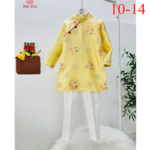 A482861 - Áo Dài Du Xuân bé trai chất vải gấm cao cấp dệt họa tiết rồng, vân mây ánh nhũ đứng form_S