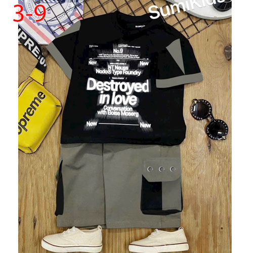 A483075 - (1/1)Bộ thun trai ngầu cho bé trai vải thun cotton 4c áo in charm chìm in chữ quần form to