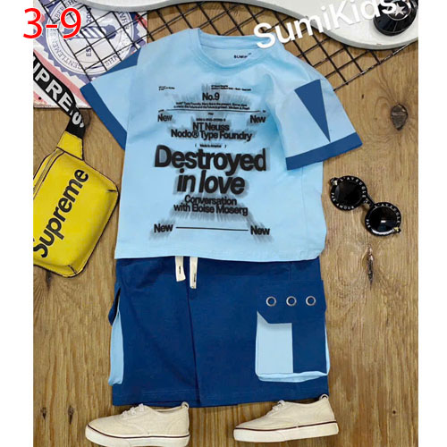 A483077 - (1/1)Bộ thun trai ngầu cho bé trai vải thun cotton 4c áo in charm chìm in chữ quần form to