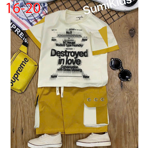 A483092 - (1/1)Bộ thun trai ngầu cho bé trai vải thun cotton 4c áo in charm chìm in chữ quần form to
