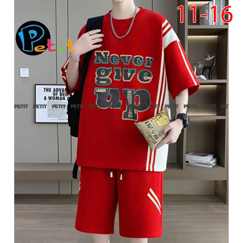 A483175 - Bộ bé trai áo tay ngắn may phối viền cổ, quần lững cực cool in Never Give Up_Size 11-16