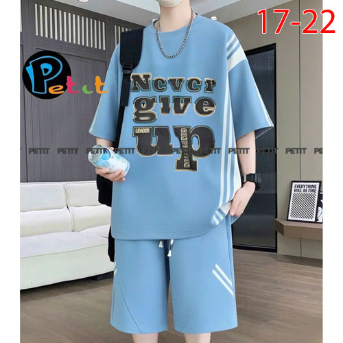 A483188 - Bộ bé trai áo tay ngắn may phối viền cổ, quần lững cực cool in Never Give Up_Size 17-22