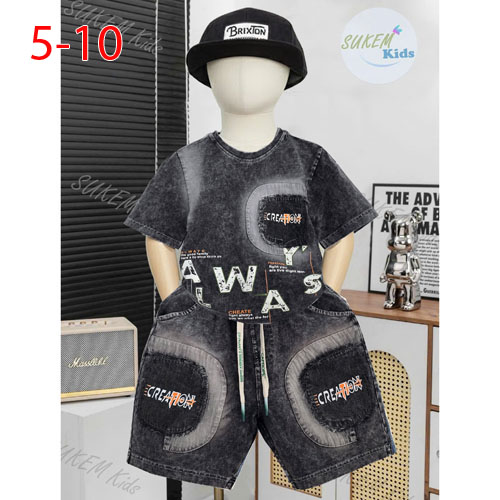 A483640 - Bộ hip hop wash đá theo quảng châu bé trai áo may ngắn tay đắp túi hộp in cham loang chữ q