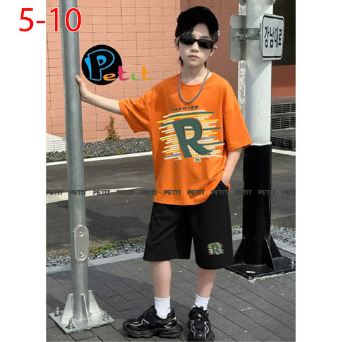 A484177 - Bộ tay ngắn bé trai, form to cực ngầu thun cotton 4c in chữ R_Size 5-10