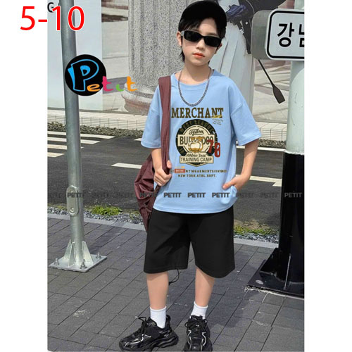A484182 - Bộ tay ngắn bé trai, form to cực ngầu thun cotton 4c in chữ R_Size 5-10