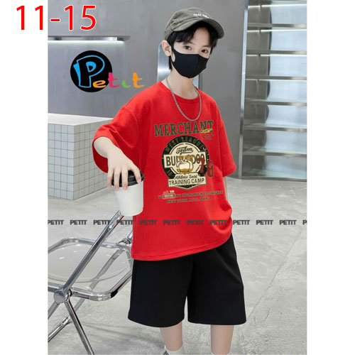 A484207 - Bộ tay ngắn bé trai, form to cực ngầu thun cotton 4c in chữ R_Size 11-15