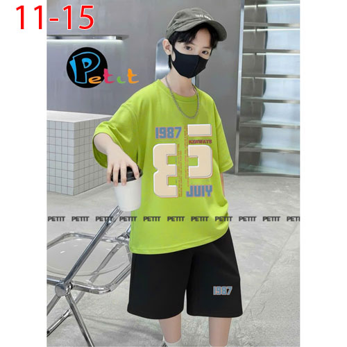 A484209 - Bộ tay ngắn bé trai, form to cực ngầu thun cotton 4c in chữ R_Size 11-15