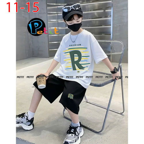 A484213 - Bộ tay ngắn bé trai, form to cực ngầu thun cotton 4c in chữ R_Size 11-15