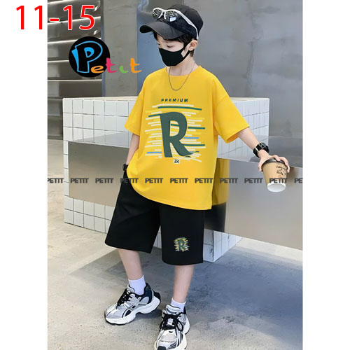 A484217 - Bộ tay ngắn bé trai, form to cực ngầu thun cotton 4c in chữ R_Size 11-15