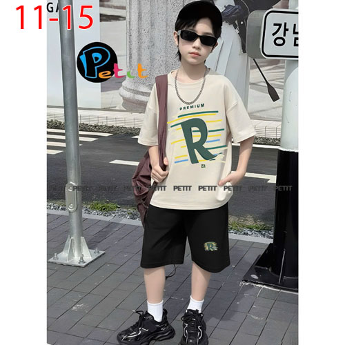 A484220 - Bộ tay ngắn bé trai, form to cực ngầu thun cotton 4c in chữ R_Size 11-15
