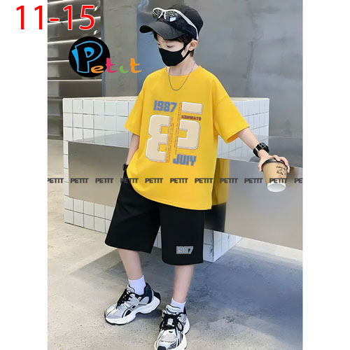 A484229 - Bộ tay ngắn bé trai, form to cực ngầu thun cotton 4c in chữ R_Size 11-15