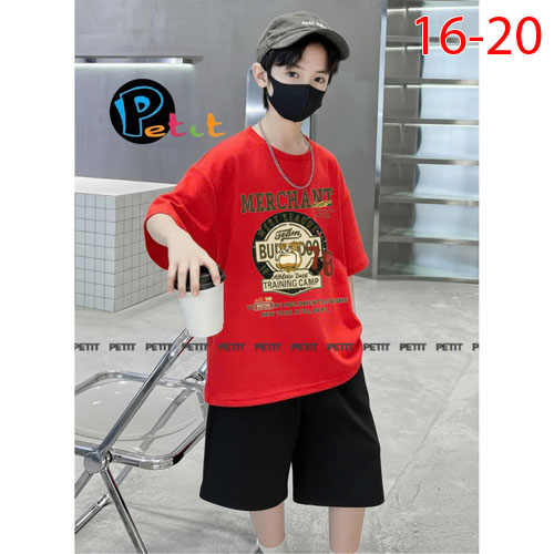 A484237 - Bộ tay ngắn bé trai, form to cực ngầu thun cotton 4c in chữ R_Size 16-20