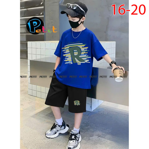 A484240 - Bộ tay ngắn bé trai, form to cực ngầu thun cotton 4c in chữ R_Size 16-20