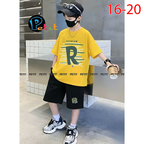 A484247 - Bộ tay ngắn bé trai, form to cực ngầu thun cotton 4c in chữ R_Size 16-20