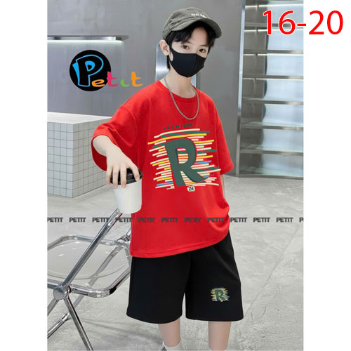 A484249 - Bộ tay ngắn bé trai, form to cực ngầu thun cotton 4c in chữ R_Size 16-20